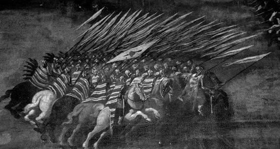 但是,翼骑兵的危机已经开始出现。危机的起源是在东南方向。17世纪30年代初,当时有志于向黑海方向扩张、不断干涉摩尔多瓦(当时是奥斯曼帝国藩属)事务的波兰人开始和奥斯曼帝国以及克里米亚鞑靼人交战。1620年10月7日,曾经攻克莫斯科的老帅——波兰王家统帅斯坦尼斯瓦夫·茹凯夫斯基率领的波兰-摩尔多瓦联军在普鲁特河畔——当时距离波兰国境不远的采措拉[7],遭到尾随的奥斯曼和鞑靼军队突然猛攻。最终茹凯夫斯基战死,以他的副手、波兰王家副统帅斯坦尼斯瓦夫·科涅茨波尔斯基(1618-1632年为波兰王家副统帅,1632-1646年为波兰王家统帅)为首的一大批贵族被俘[8]。虽然后来这批贵族军官先后被赎回,但是当时这次战斗对于波兰贵族阶层,以及翼骑兵的打击还是极为巨大的,可以说是波兰翼骑兵遭受的第一次重大的损失。次年进行的霍奇姆战役——“十大胜利”中第六次大胜中,由立陶宛统帅霍德凯维奇(基尔霍姆战斗后他由立陶宛副统帅晋封为立陶宛统帅)指挥的5万人骑兵大军里,一半的军队是用乌克兰哥萨克充数的,很大程度上不得不说这就是采措拉之败的后果。这场以霍奇姆要塞为核心,持续了一个多月的围城战虽然以波兰胜利告终,但是立陶宛统帅霍德凯维奇却在胜利之前病死。也就是说,在这场大约两年的规模不大的战斗中,波兰和立陶宛军队中4名统帅中有3名损失,贵族军官以及装备的损失也十分巨大,但是却没有换来什么值得一提的利益。