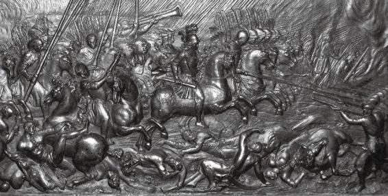 ◎ 别列斯捷奇科战斗中,扬二世·卡齐米日国王率领翼骑兵冲锋,图为法国巴黎圣日耳曼德佩修道院浮雕。扬二世·卡齐米日的心脏安葬于此。