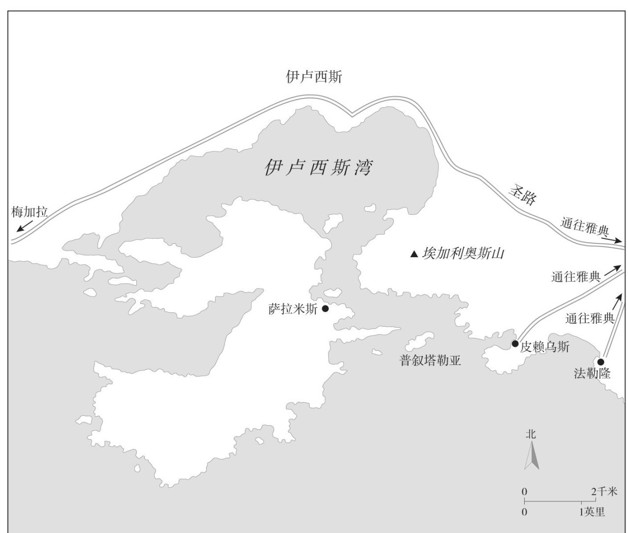 我们不知道地米斯托克利和波斯间谍之间究竟达成了什么协议。暗中背叛和间谍活动的黑幕往往难以揭开——而这一切又远在两千五百多年前。我们只知道在波斯舰队巡逻返航回到法勒隆之后不久,就有报告说希腊指挥官们得到这个令人担心的消息后陷入了互相争斗的状态,有一艘小船悄悄从雅典舰队中离开,驶向海峡对岸。船上是地米斯托克利最信任的奴隶,他儿子的监护人西金诺斯。从这个人的名字具有的弗里吉亚(Phrygia)特点来看,他很可能会说一些波斯语,因为他的家乡是位于吕底亚以东的一个波斯总督领地。10而那些在大陆上迎接他到来的人们也并不感到惊讶,他一上岸就立刻被带到波斯最高指挥部。显然他带来的消息非常急迫:西金诺斯报告说希腊人正打算在当天夜里逃走。地米斯托克利向波斯人提出建议:“只有阻止这些人,你们才能够获得胜利。”与此同时按照这名奴隶的描述,雅典海军出于对联军背信弃义的激愤,“全心全意地支持国王,急切地渴望波斯人获胜”。11如果帝国间谍官员的确完成了和地米斯托克利接洽的任务,现在一定得到了自己最渴望的消息。