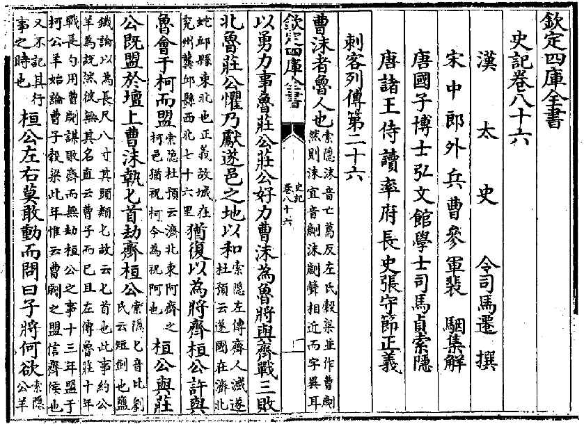《史记·刺客列传》中记载曹沫持匕首劫齐桓公