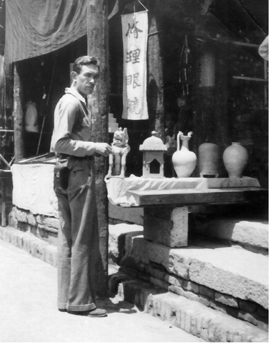 1933 年,初出茅庐的劳伦斯·史克曼研究员在洛阳。图为他在龙门石窟附近淘宝。