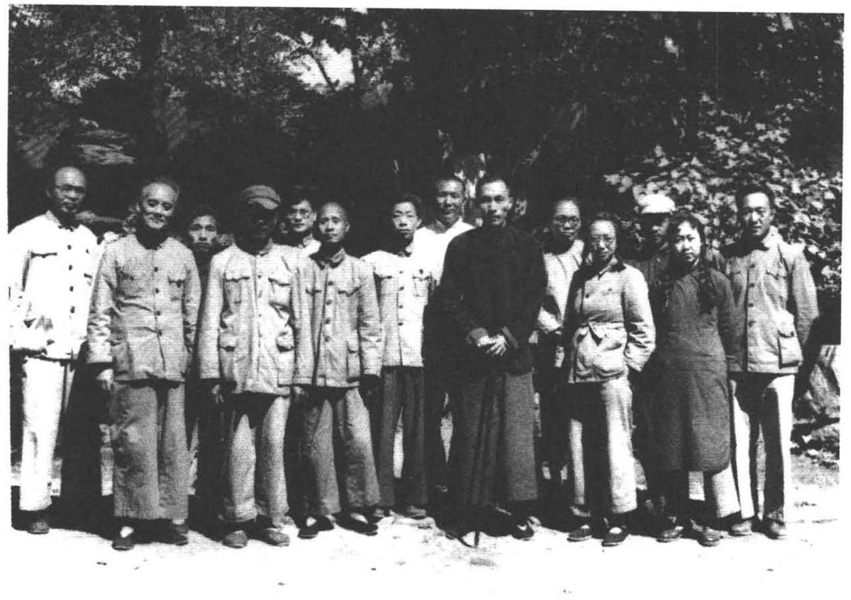 20世纪50年代初,梁思永(拄杖黑衣者)与中国科学院考古所同人。