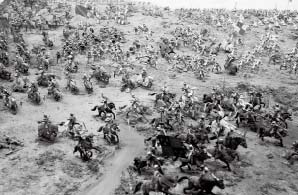 斯坦利男爵看见理查德三世与他的骑士们脱离主阵,知道机会来临,终于下达作战令。两支斯坦利军一齐向白野猪旗的部队发起攻击,冲过来解救亨利·都铎。