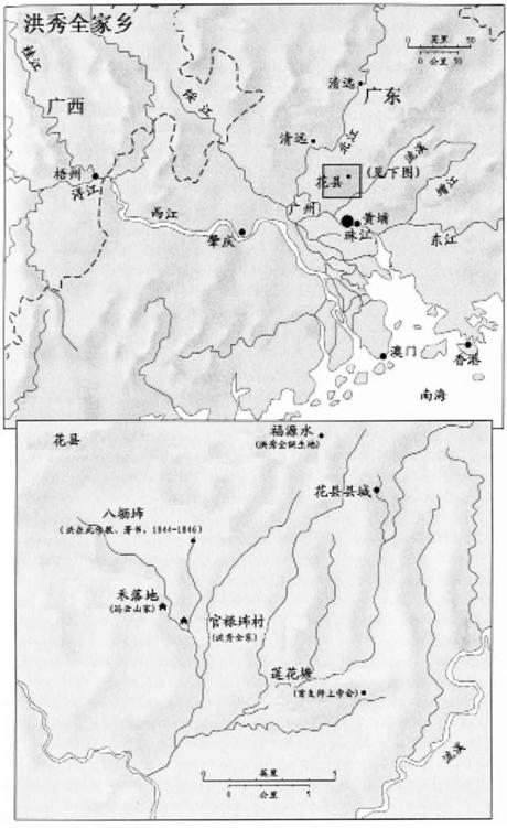 的这支洪氏族人,祖上在宋代迁至靠近福建的粤省东北,主要集中在梅县(这是客家人的重镇,至今犹然),不过也有一些族人散居各地11。洪火秀的四世祖迁至花县这不为人知之地,此举确是大胆,因为花县不像梅县是客家人生活和语言的中心。花县一带虽然很繁荣,盛产稻麦、大麻、大豆、各类蔬菜瓜果、酒、蜂蜜、食油、鱼虾家禽等12,但洪氏族人即使想来此垦荒,也不太可能找到一整块地来耕种,所以无法整族迁徙,而必须零星行动。由于土地已有当地人定居,而且客家人风俗有别于汉人,在华南许多地方并不甚受欢迎。但即使客家人受到孤立,也透过方言纽带繁衍生息,团结一致。若有媳妇从外村嫁过来,操的是其他方言,那也不得不学说她夫家的话,所生的孩子自然也是如此13。