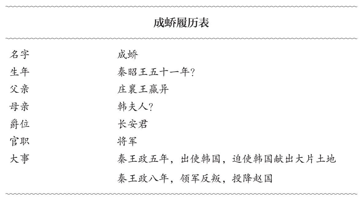 追查疑案,首先要追查与疑案相关的嫌疑人。成蟜之乱的主角是成蟜,自然是追查的第一嫌疑人。关于成蟜其人,我们可以提供一份简单的材料如下: