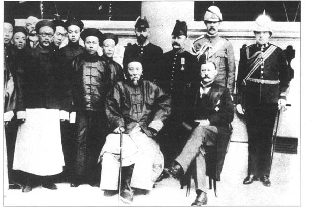 李鸿章和他的幕友(香港,1899)。李鸿章左侧戴眼镜者为唐绍仪。李国超提供。