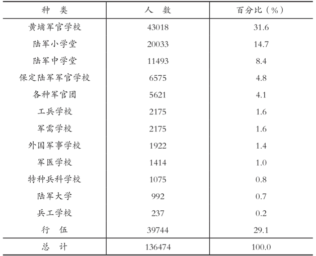 第一件资料为1936年1月28日美国驻华武官的一份关于中国陆军军官出身统计报告,[36]其中收录于表1-5、1-6。