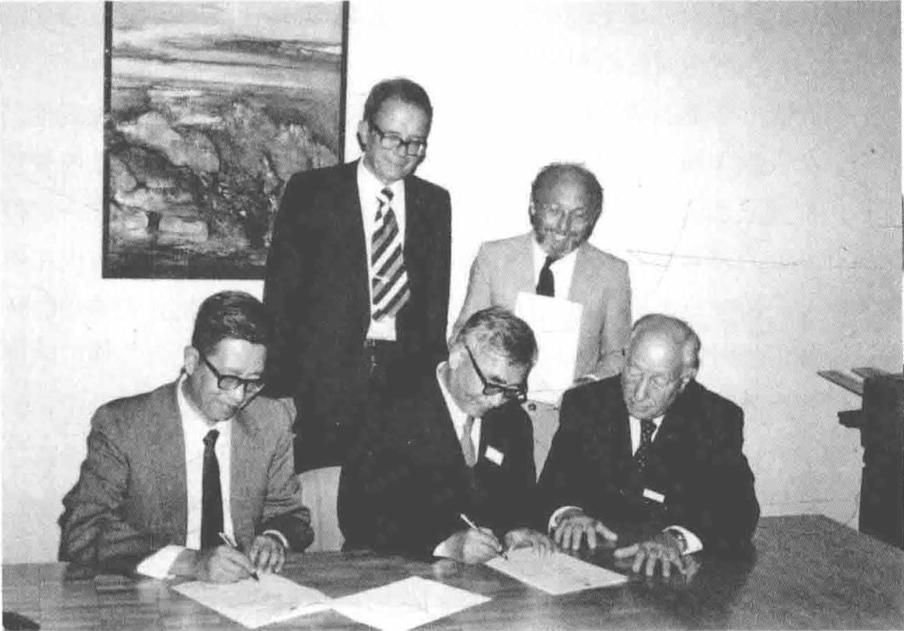1979年9月3日,卢嘉锡、胡亚东代表中国化学会签字加入国际纯粹与应用化学联合会(胡亚东先生提供,摄于瑞士达沃斯)