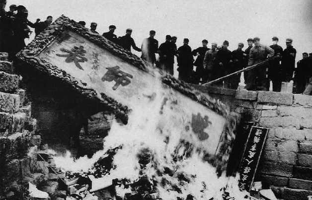 理论上的颠覆,更需要现实的批判强化,所以太平军所到之处,焚烧孔庙,捣毁孔子像,宣布《四书》、《五经》为“妖书”,“凡一切妖书,如有胆敢念诵教习者,一概皆斩。”这些事,我们在第二章时已经讲过了。