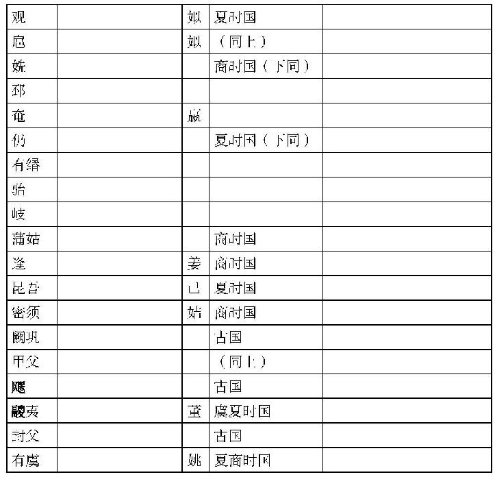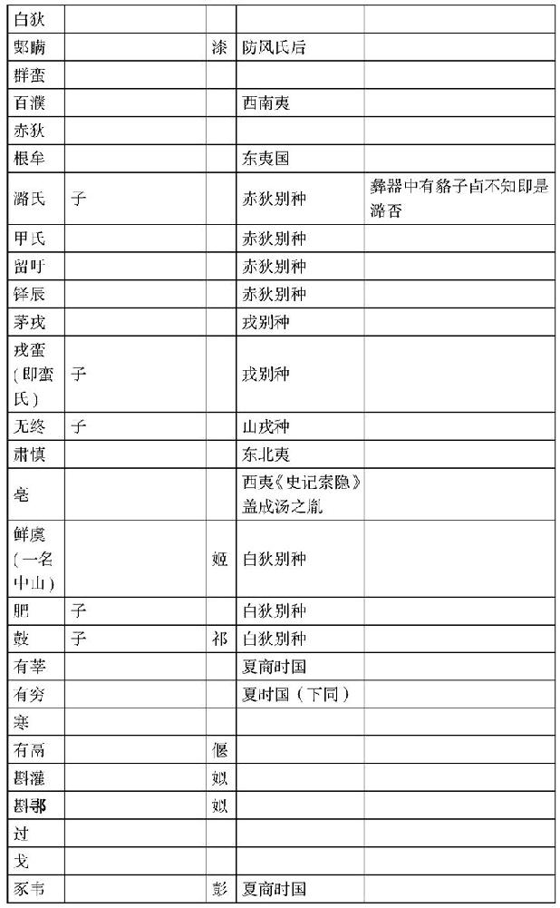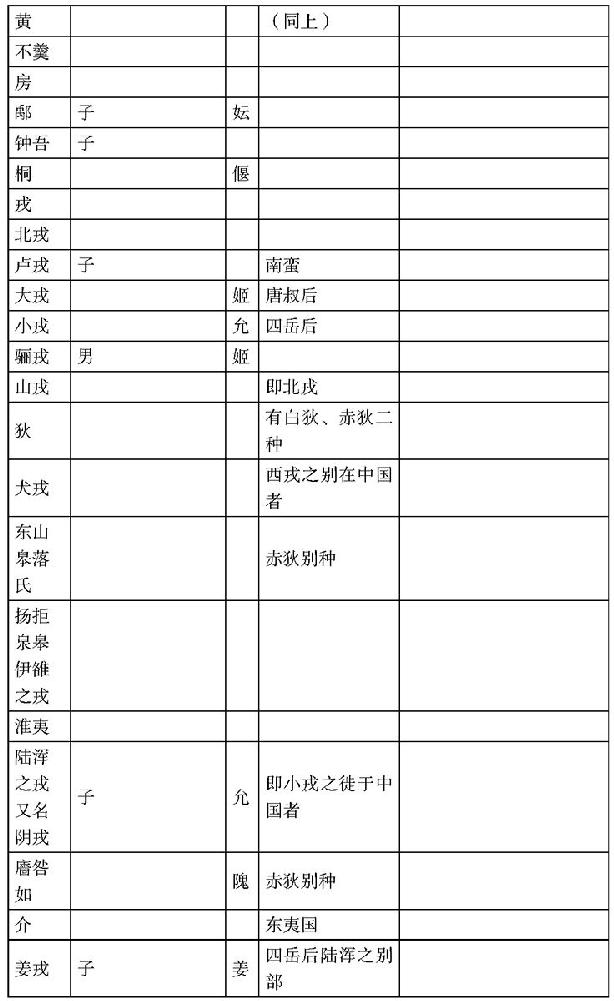 姓无可考者有 鄾,郧,赖,麇,宗,潞,戎蛮,无终,肥,钟离,钟吾,卢戎。