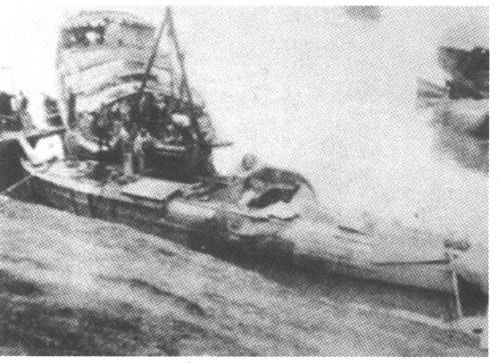 史102艇发射的鱼雷,一枚射偏,击中邮船码头一侧英美烟草公司前的码头岸边,当即将码头炸毁一截,附近房屋纷纷被震倒塌。