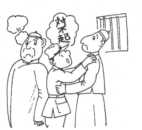 谷田看看这边黑洞洞的枪口,琢磨了半天,终于想明白了,冲着老大、老二又是一鞠躬——“对不起”。