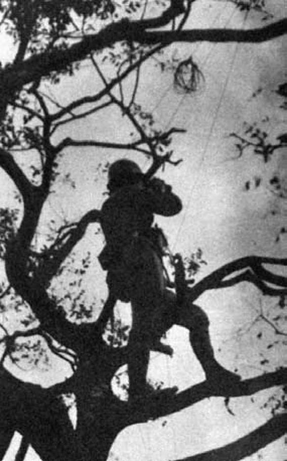 日军爬上树顶观察中国军队的动静,缅北的密林为日军侦查人员和狙击兵提供了便利。