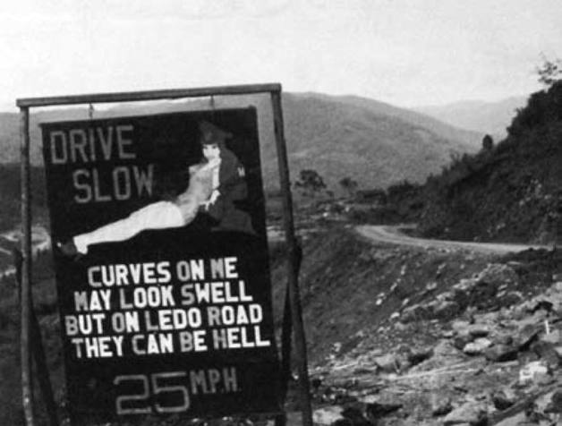 中印公路急转弯处美国工兵设立的路标:慢开,我身体的曲线也许很美。