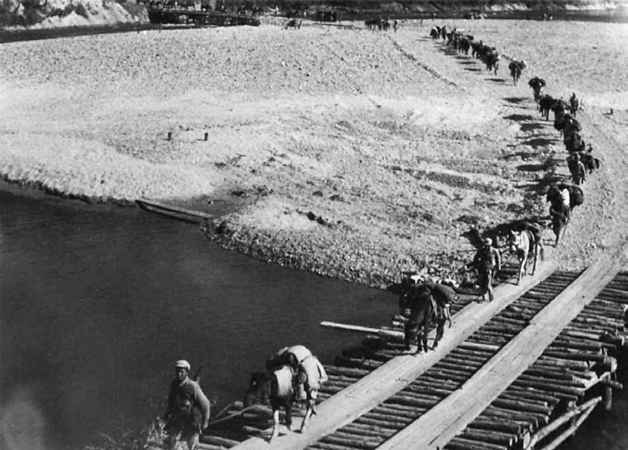图为腾越—龙陵之间的运输队。打下腾越,这条道路便成为龙陵之战的输血路线。