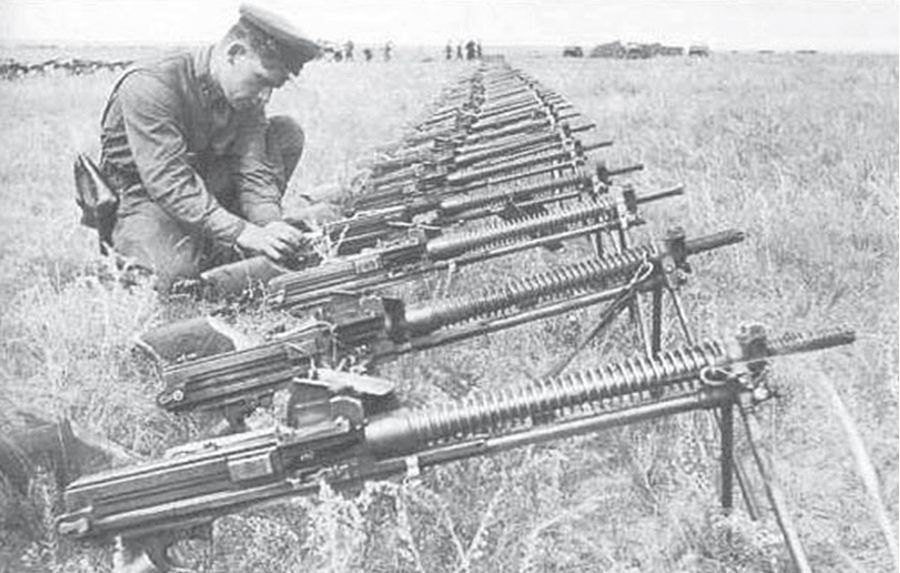 苏军缴获的日军武器。从外观上看,应该全是大正十一式轻机枪也就是俗称的“歪把子”。