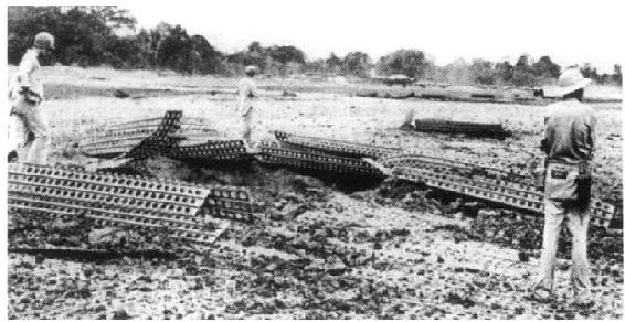 遭到轰炸的亨德森机场,地上的金属板是雨季铺临时跑道用的