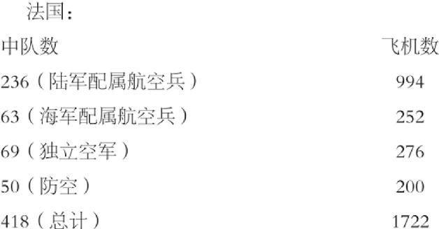 殖民地的航空兵未统计在内,因为在战时要求该航空兵仍留在殖民地内。