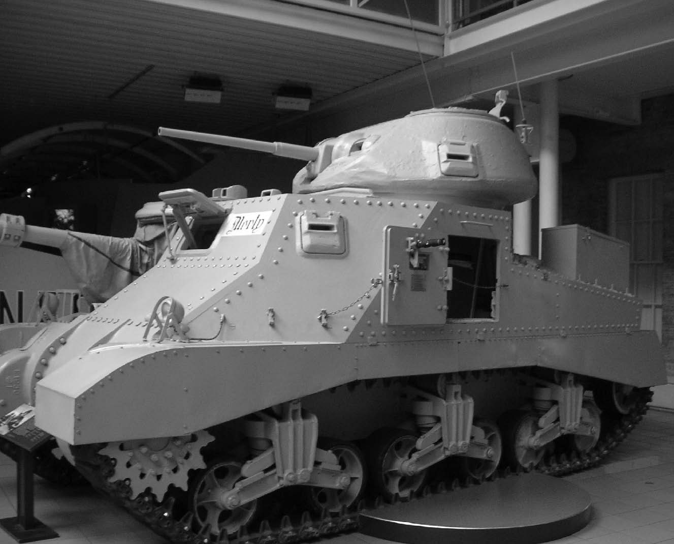 “格兰特坦克”高大笨重,重27吨,用51毫米厚的钢板做装甲。车身高3.12米,两侧有车门,进出方便,但目标大,容易被击中。公路上最高时速42公里,野地时速仅26公里。主炮侧置,虽然口径较大(75毫米),但炮筒短,而且只能向前方射击。副炮置于车顶旋转炮塔内,虽然可以向各个方向射击,但口径只有37毫米。鉴于实战中表现不佳,1943年美国便不再生产,改而生产“谢尔曼坦克”(Medium Tank M4 Sherman),它得名于美国内战中的著名将领威廉·谢尔曼(William Tecumseh Sherman,1820—1891),重30吨,装甲厚63毫米,高2.74米,火炮口径75毫米,最高时速40~48公里。