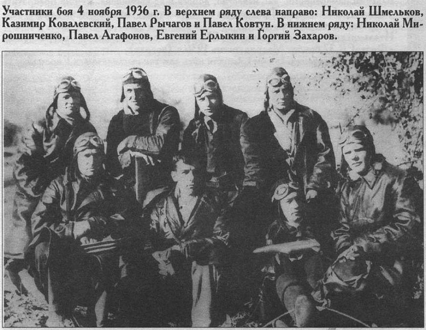 参加西班牙内战的部分苏联空军飞行员,后排左起第三人是巴维尔·雷恰戈夫(1936年11月4日)