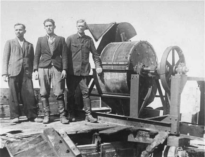 1943年夏秋季在乌克兰利沃夫附近雅诺夫集中营(Zwangsarbeitslager Lemberg-Janowska)碎骨磨旁的“自愿协助人员”