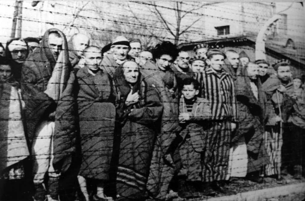 1945年1月,苏联红军解放奥斯威辛集中营时见到的幸存者。