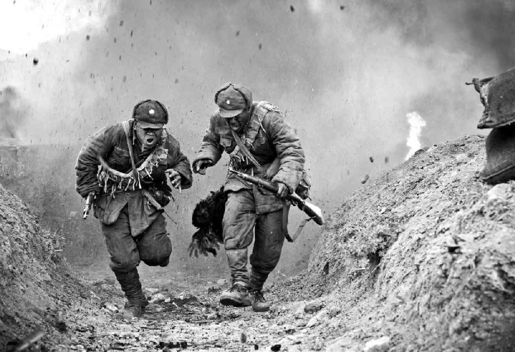 七八个日本兵紧跟着出现,他们挺着刺刀,冲入中国老百姓的群落……