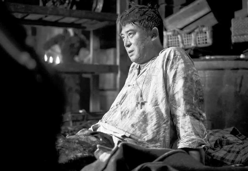 法比教袍里的枪口对着黑岩,以左手郑重地画了个十字。