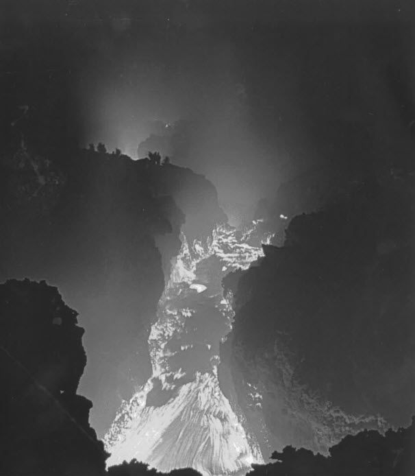 第二股岩浆的洪流是顺着瀑布河的河谷流出的,这条河谷宽阔,加之两岸地势平坦,所以洪流并未遇到任何障碍。沸腾的岩浆涌入远西森林。现在正是一年中气候酷热的时期,树木都被烤干,而且立刻着起了火,火势凶猛,火焰从这个树干蔓延去那个树干,而高处交叉在一起的树枝蔓延起来就更为迅速。树顶的火势比树根岩浆的洪流似乎前进得更快。