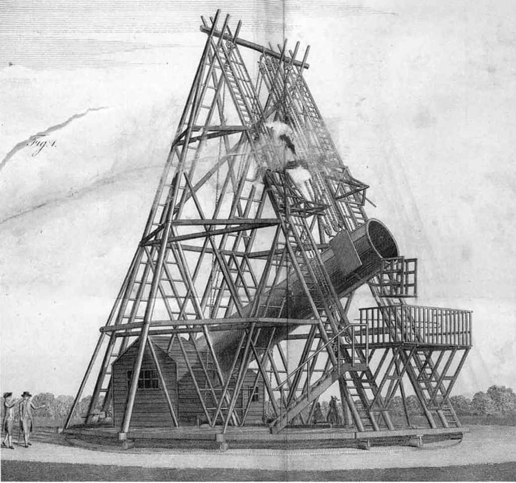 方案定了之后,建造工程开始了。根据坎布里奇天文台的计算,这架望远镜的长度是280英尺,反光镜的直径16英尺。尽管这架仪器体积庞大,可比起几年前英国天文学家胡克设想的一架10000英尺的望远镜来,还可谓是小巫见大巫了。尽管如此,造这架望远镜还是有很多困难。