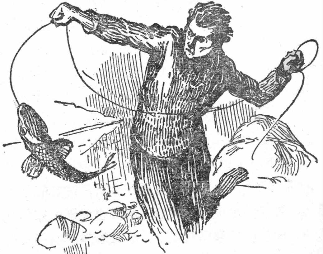 中午,汉斯用线系了一个鱼钩,鱼钩上挂着一小块肉作为诱饵,扔进了海水中。两个小时内,他毫无收获。难道这海水中没有原始居民存在吗?不,鱼线猛地跳动了一下。汉斯迅速收线,拉起一条正在挣扎的鱼。