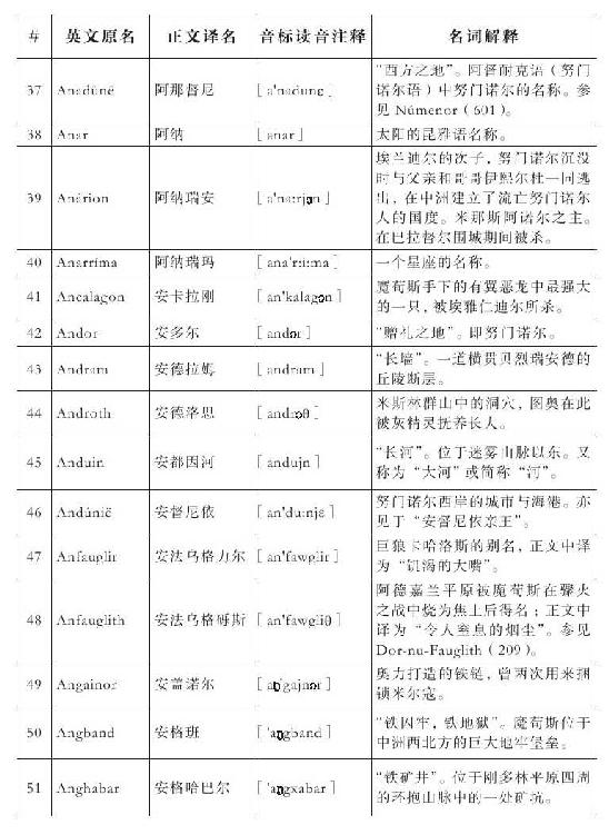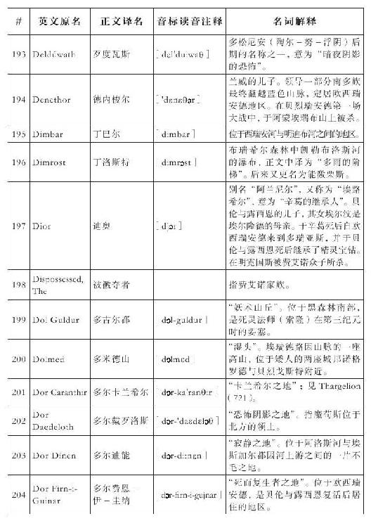 Nargothrond:译为“纳国斯隆德”(而非“纳戈斯隆德”),更为美观,又取“国”的“国度”含义。