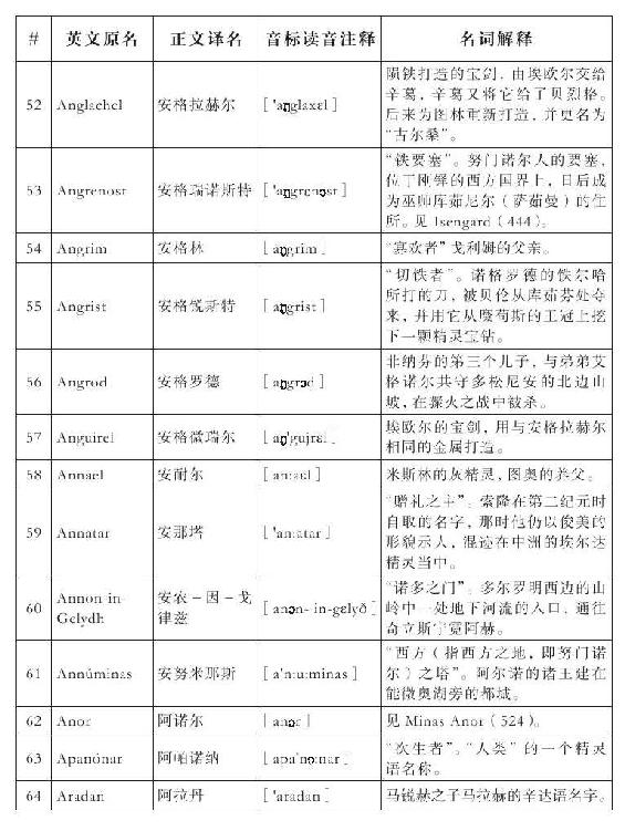 Menegroth:译为“明霓国斯”(而非“美尼格洛斯”),更为美观。