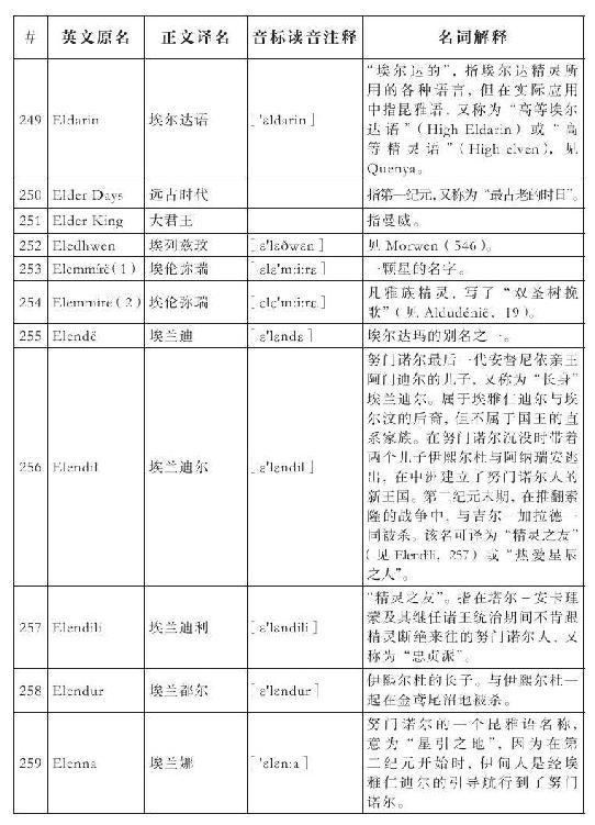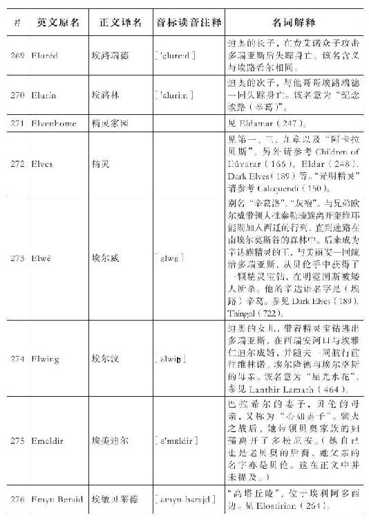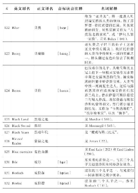 lembas:译为“兰巴斯”(而非“伦巴斯”),既为美观,又考虑其词源lenn-mbass,更是约定俗成的译法。