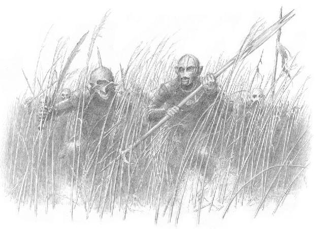 我在此给出《蕾希安之歌》的选段(写于1925年,见第86页)。这段讲述的是戈利姆的背叛,以及之后发生的事。戈利姆又称“寡欢者”戈利姆,是他把巴拉希尔及其同伴出卖给了魔苟斯。在此我要提一句,这首诗的原文考订细节十分复杂,但我彻底忽略了这种性质的细节,因为我(雄心勃勃地)想以本书达到这样一个目的——编出一份容易阅读的文本,展示传说的情节在不同阶段的演变,而原文考订的细节只能给这个目的造成干扰。这首诗的文本历史介绍,在我那本《贝烈瑞安德的歌谣》(《中洲历史》第三卷,1985年出版)里可以找到。本书中的《蕾希安之歌》选段,是从我为《贝烈瑞安德的歌谣》准备的文本中一字不差地摘录的。诗句编号就是选段里诗句的编号,与整首诗无关。