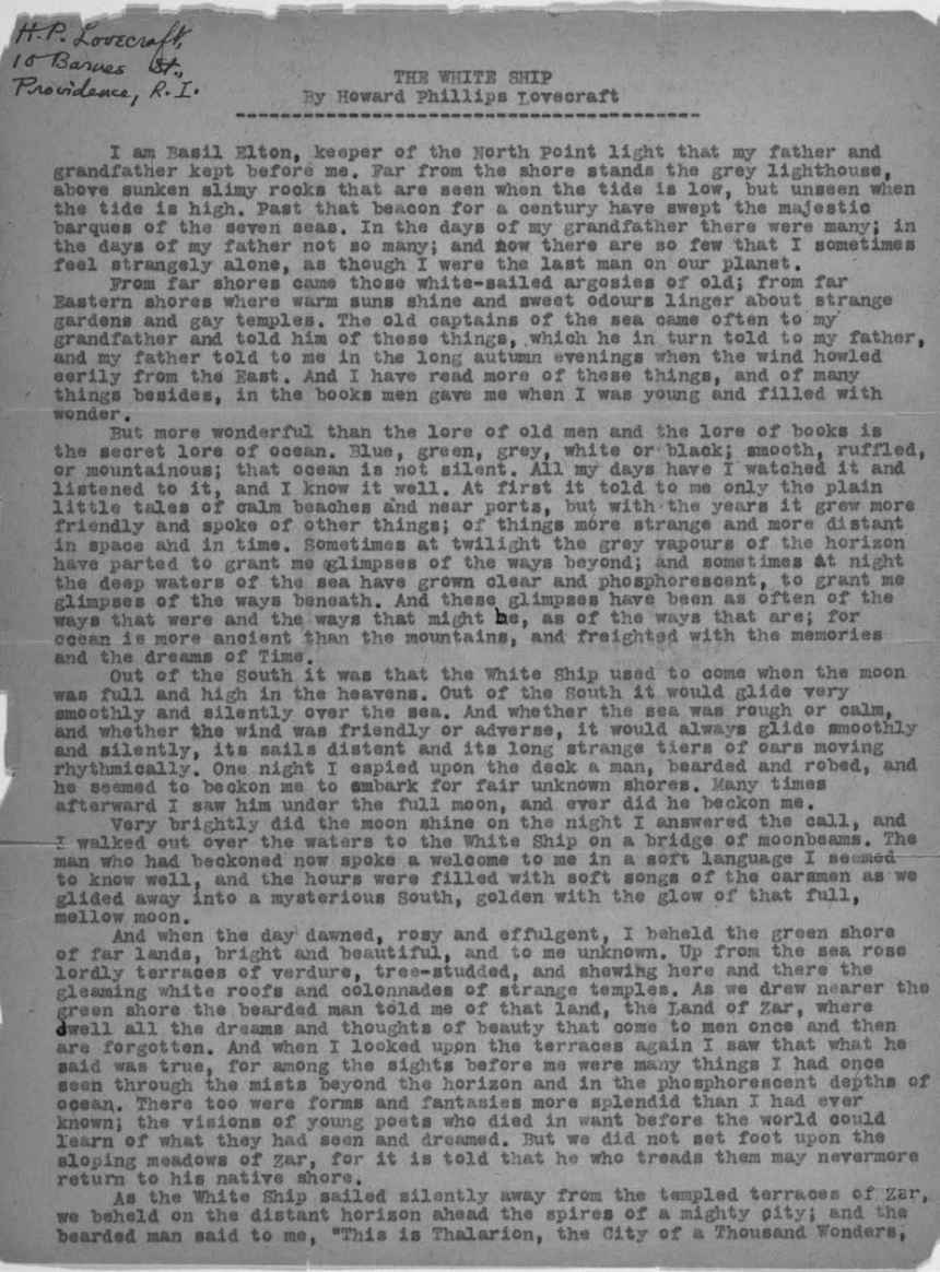 手稿写于1919年11月,最初发表在《美国联合业余刊物协会会刊》杂志上。这篇打字稿可能是他人在1932年或1933年完成的。