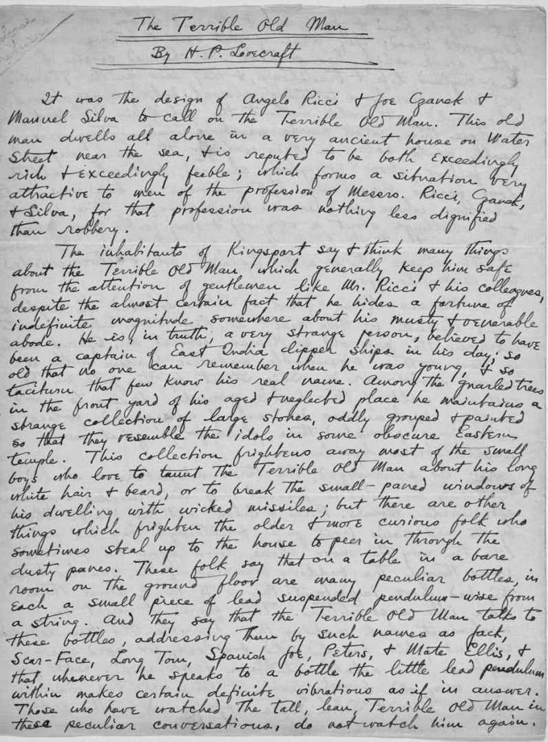 《可怕的老人》的手稿。