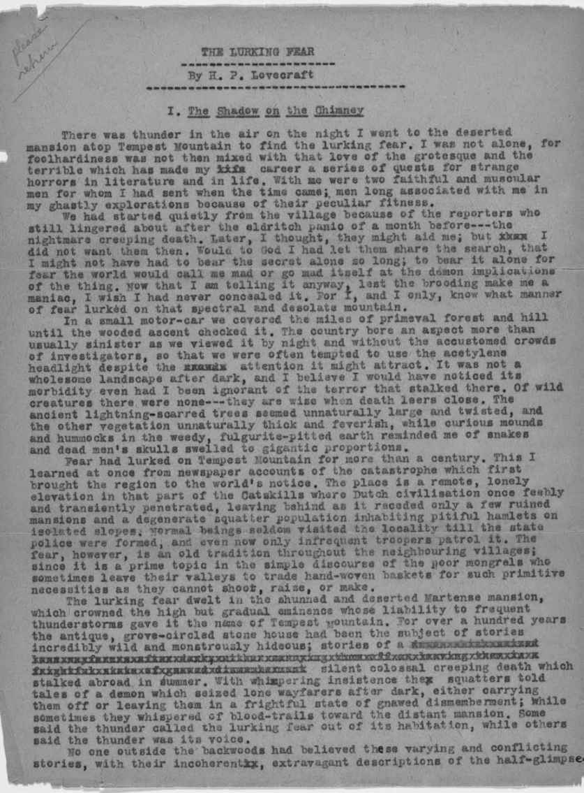 在一个雷声滚滚的夜晚,我前往风暴山山顶废弃的公馆,去寻找潜伏其中的恐惧。那时我虽然热衷于怪诞与可怕的事物,事业也由此被引向一连串对罕见于文献与生活中的恐怖事物的探索,但还没有因为这份热爱就鲁莽行事,故而此行我并非孤身一人。出发前,我召来两个忠诚又强壮的男人与我同行。在我骇人的探险活动中,他们与我合作已久,确属不二人选。