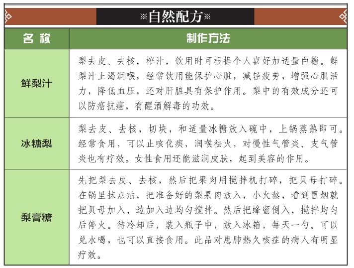 梨就是利的意思,因为它能使人排泄顺利。梨的品种很多,且均为寒凉之物,因此人们又称之为快果,不可以入药。