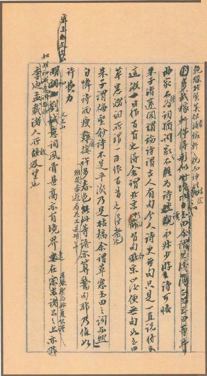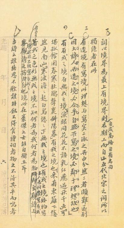 手稿本为王国维最初写作《人间词话》之稿本,凡一百二十五则。手稿本前三十则主要是对传统诗词理论的辨析与引申,第三十一则提出境界说之后,才有对境界的诠释和分类等条目。自第三十一则后,近现代西方的哲学美学话语以一种参证的方式融入进来。