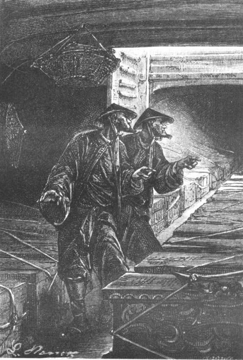 这时,殷船长谨慎地叫人打开舱口盖,给底舱通通风,以便吹干刮台风时涌进的海水。克雷格和弗莱在甲板上散步,他们不时地停下脚步,往中间的舱口盖看。后来出于好奇,他俩一致同意到底舱去瞧瞧。他们顺凹口爬下去,到了底舱。