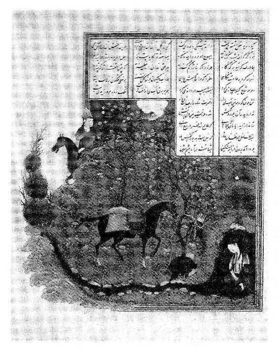 第二个故事与第一个故事同样古老,也有许多不同的版本。它见于《一千零一夜》、《鹦鹉的故事》(Parrots’ Tales of Tutiname),以及内扎米的《霍斯陆与席琳》(Hüsrev and Şirin),其翻版又在其他许多书中出现。这里,我想概述一下内扎米版的这个故事。