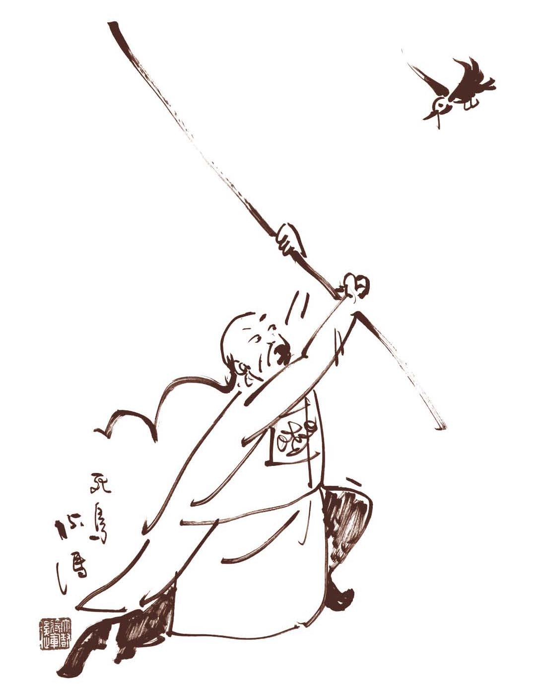 贺道台叫仆人们用竿子打,用砖头砍,爬上树抓,八哥在树顶上来回蹦了一会儿。还不住地叫:『死鸟!死鸟!死鸟!』最后才挥翅飞去,很快就无影无踪。