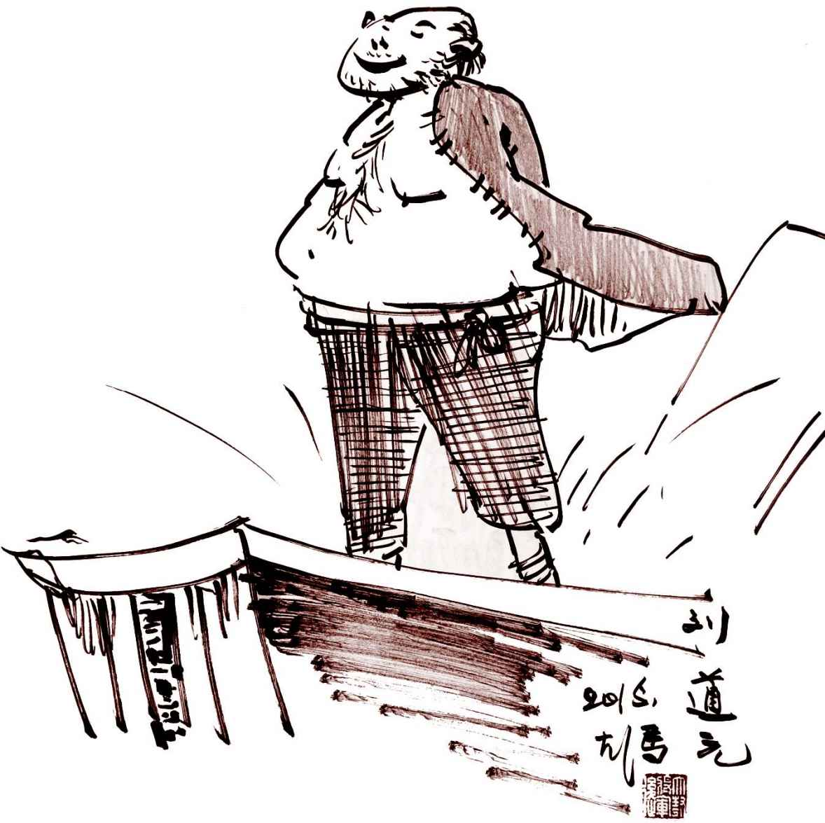 买卖家打官司,谁使刘道元的状子谁准赢,没跑。人说,他手里的笔就是判官笔,他本人就是本地人间的判官,谁死谁活,全看他笔下的一撇一捺了。可是他决不管小店小铺的事,只给大买卖写状子。大买卖有钱,要多少给多少。他要是缺钱,也用不着去借,只要到大买卖门前,往门框上一靠,掌柜的立时就包一包钱,笑嘻嘻送上来。那些武混混儿们来要钱,都是用爬头钉打嘴里把自己的嘴巴子钉在门框上,不给钱不算完。那模样龇牙咧嘴,鲜血直流,真把人吓死。但人家文混混儿刘道元决不这么干,他倚在门框上的神气,好赛闲着没事晒太阳。只要钱一到手,扭身就走,决不多事。这便是文混混儿的这个“文”字了。