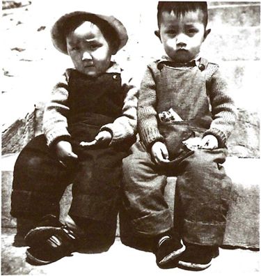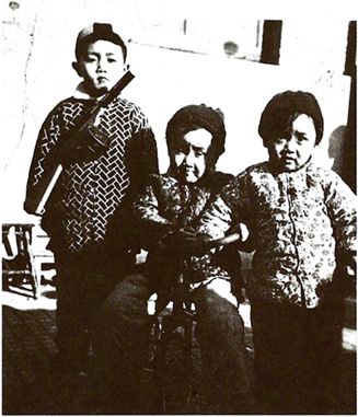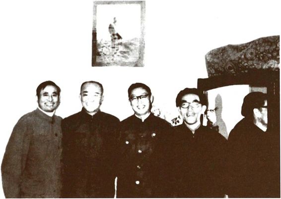 父亲和亲人合影,左起大姑父韩耀辉、伯父赵夷年、叔叔赵延年(1977年11月)