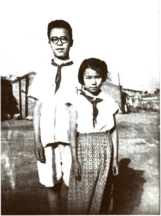 和同班同学合影自左至右:李惠敏、徐金波、郎放、赵振开、曹一凡、史康成、吴人侃、张潜