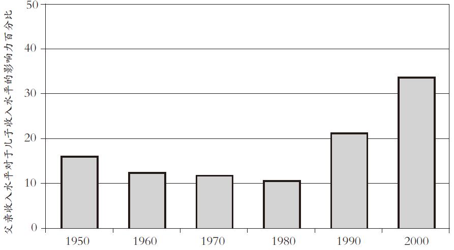 图表12.2:美国的社会流动性于1950 至1980 年间有所提高,随后开始降低。