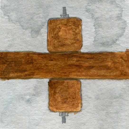 下午,男生们还在休息,我提早了一些独自到房子里,爬到屋顶上,稍微调整上午已经缠好的一部分麻绳。