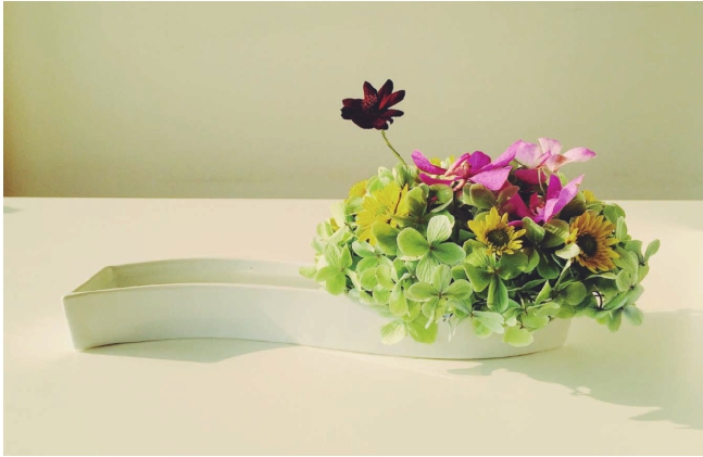 要让花儿们活着得概念很重要,在花道中不会出现让花儿们吸不到水的事情,要保证它们能尽可能地活下去,把剩余的生命在花道师的手中更美地展现,在瓶中随着时间渐渐枯萎,而并非昙花一现。