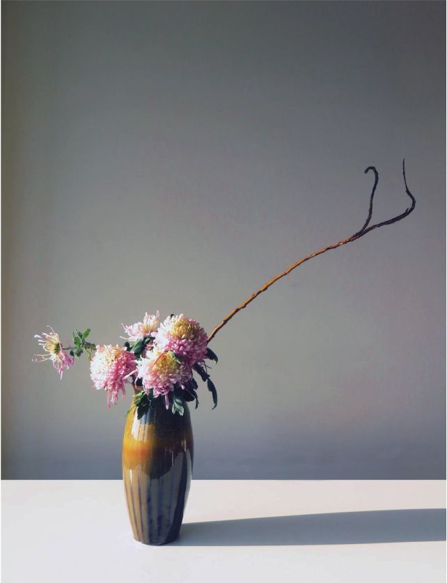 瓶花艺术是一种大自然的造型艺术,但绝不是随心所欲、芜蔓无修单纯地推崇自由,基本原则是要有的。如何将材料在无任何人为加工的情况下,插置出作品的形式之美,比例、高低、变化与统一、动态与平衡、韵律与节奏,唯有熟练把握这些基本原则,才能真正地不拘格式地表达出作者的意图与天趣。